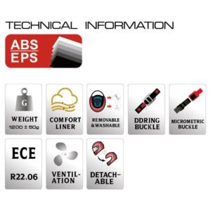 Thermoplastic shell made from high-strength primary ABS with additional controlled hardness, structurally reinforced and protected with UV radiation varnish.