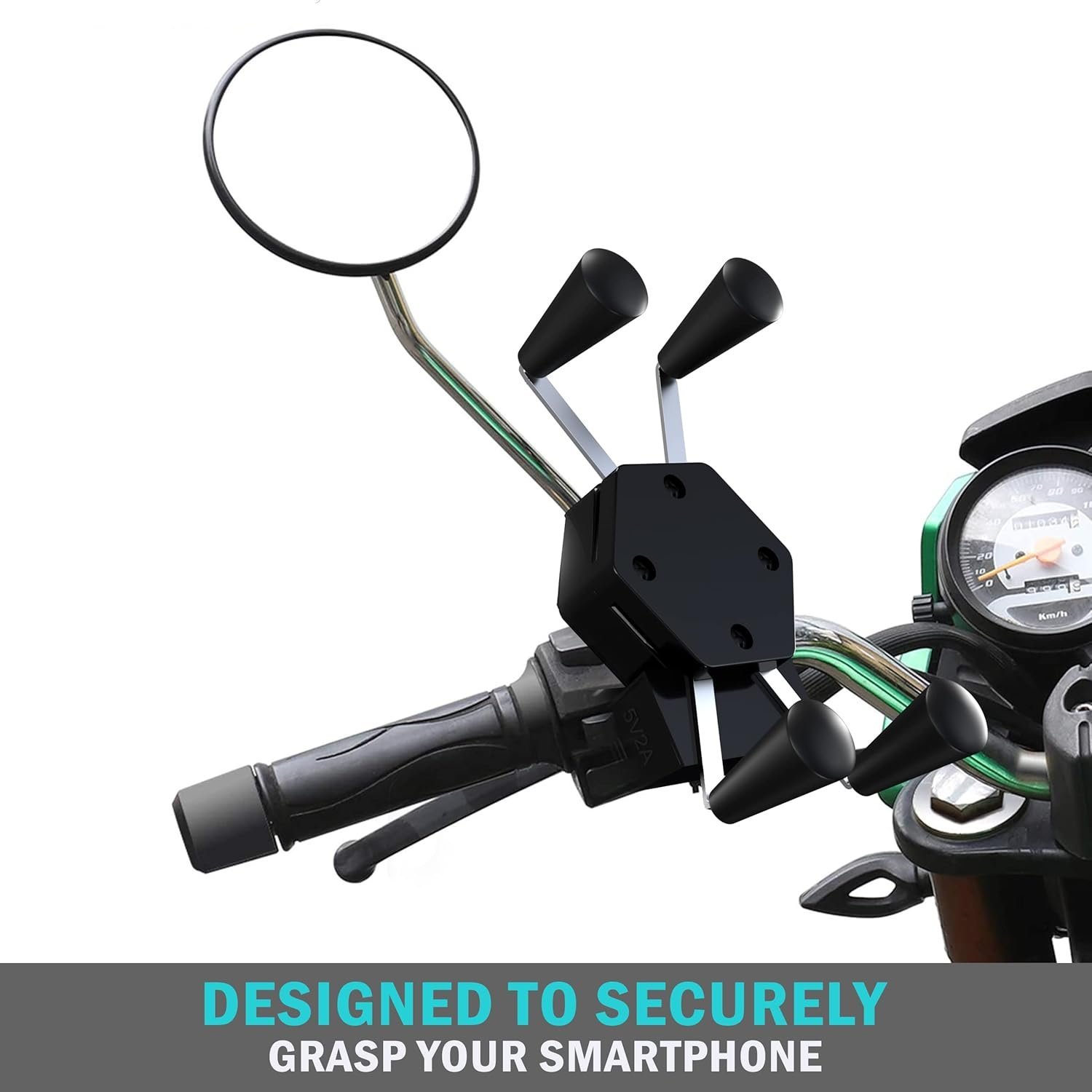 - STRONG AND SECURE INSTALLATION – Easy to assemble and convenient to use, it securely attaches to the rear view mirror rod to provide ensure a rigid and anti-vibrational ride for your device. An essential bike accessory for outdoor riding.