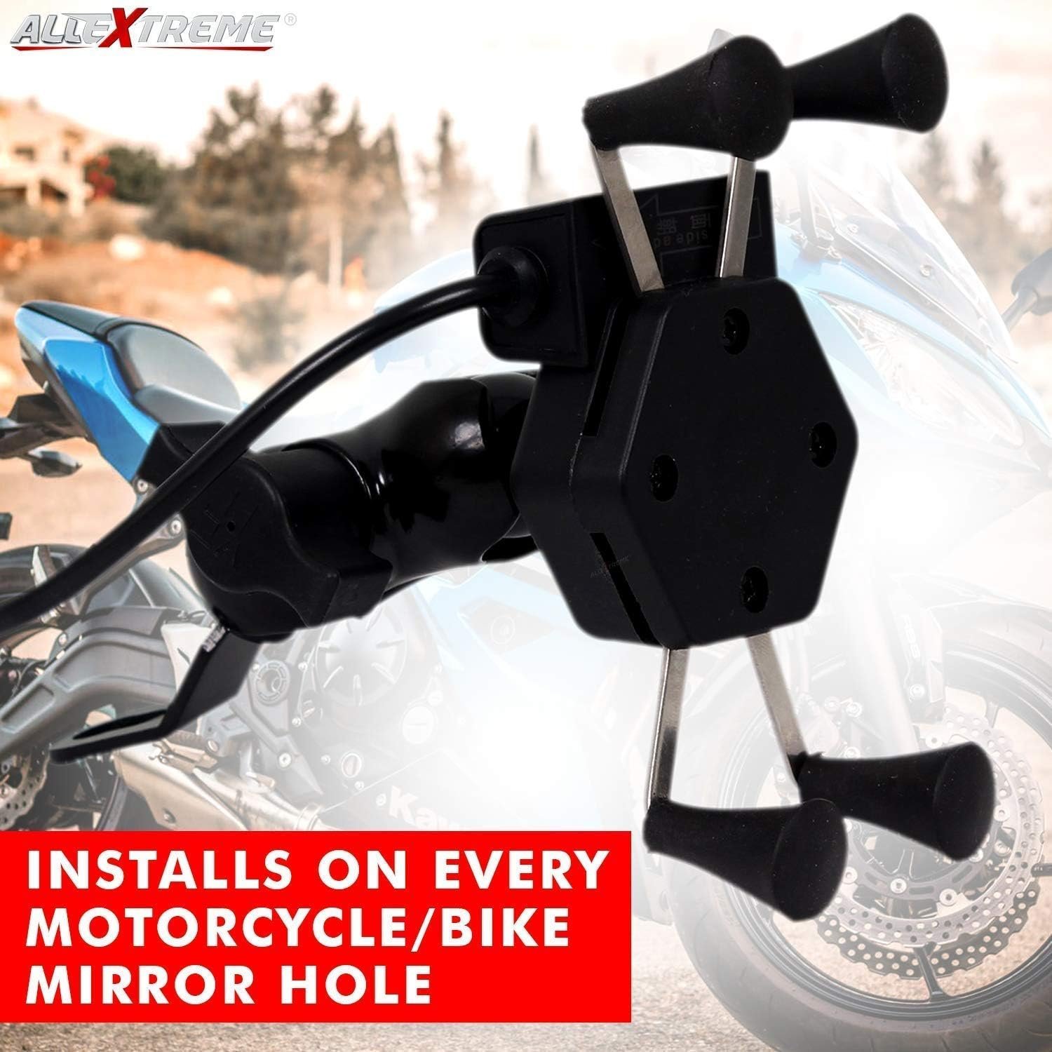 - SECURE FIRM GRIP – All Extreme upgraded non-vibration mobile holder is designed with four non-slip corners to secure your mobile phone all-around to guard against any accidental falls attach your device to the holder conveniently without the ugly and annoying strap.