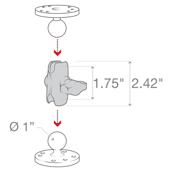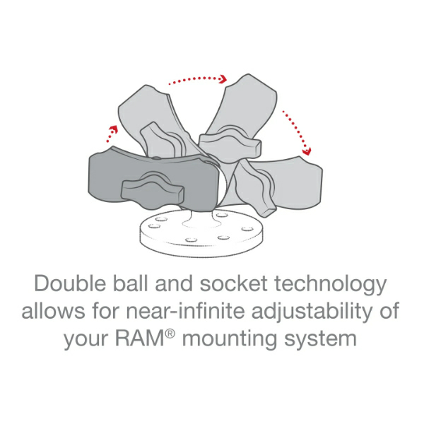 • Attaches to any B size RAM® ball component, including mounting bases and device holders; double ball and socket technology allows for near-infinite adjustability of your RAM® mounting system